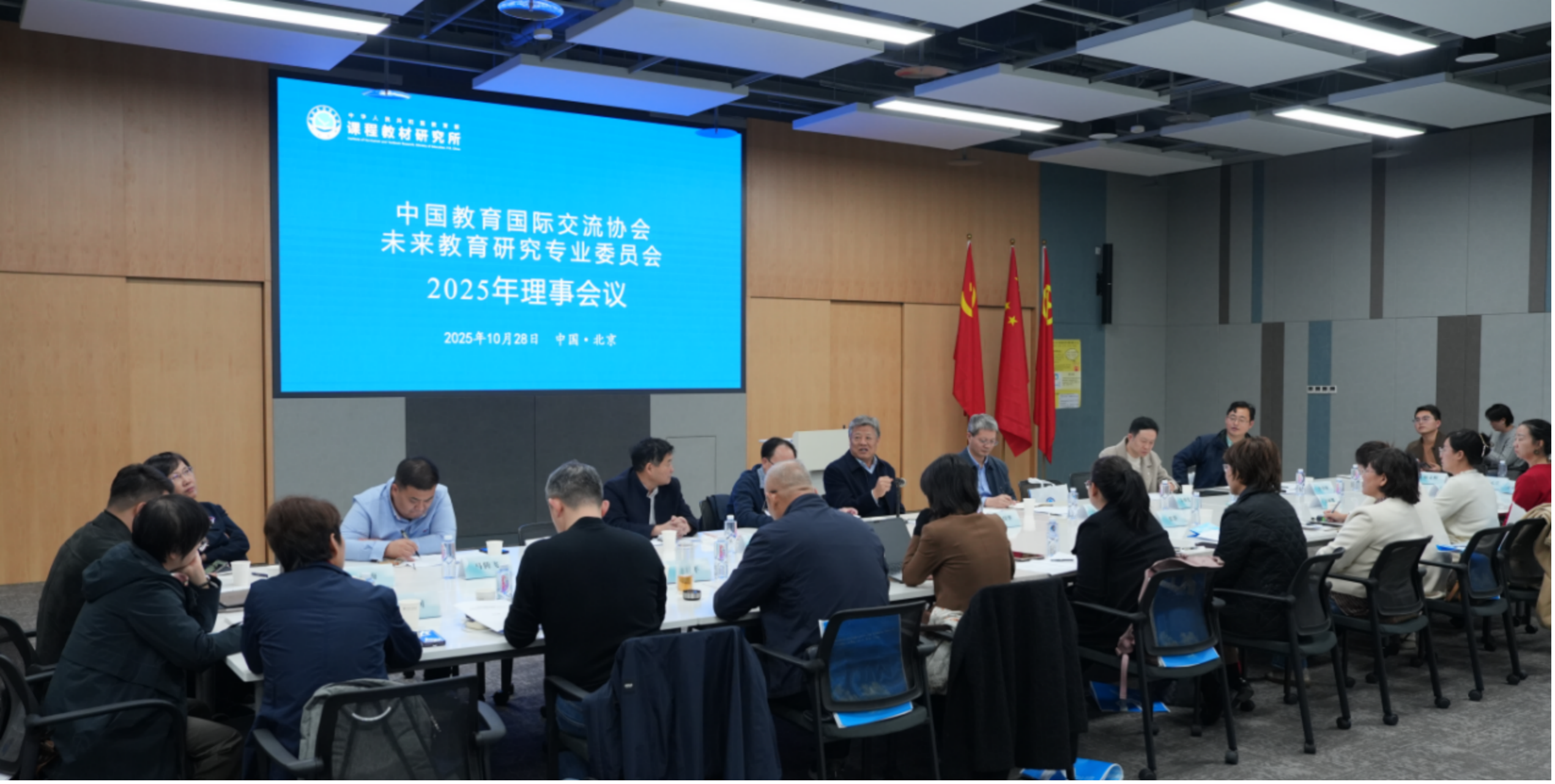 2025年10月28日,中国教育国际交流协会未来教育研究专业委员会秘书处组织召开2025年理事会议,来自全国各地的理事单位代表、知名校长等共30余人参加了会议。本次会议以“未来学校的样态”为主题,通过主旨报告、现场学习观摩、专题交流等形式进行。未来教育研究专业委员会理事长、课程教材研究所原党委书记、所长张国华同志,教材所党委副书记、纪委书记韩春勇同志出席并参与讨论。会议由政策研究与宣传中心主任李泽林主持。