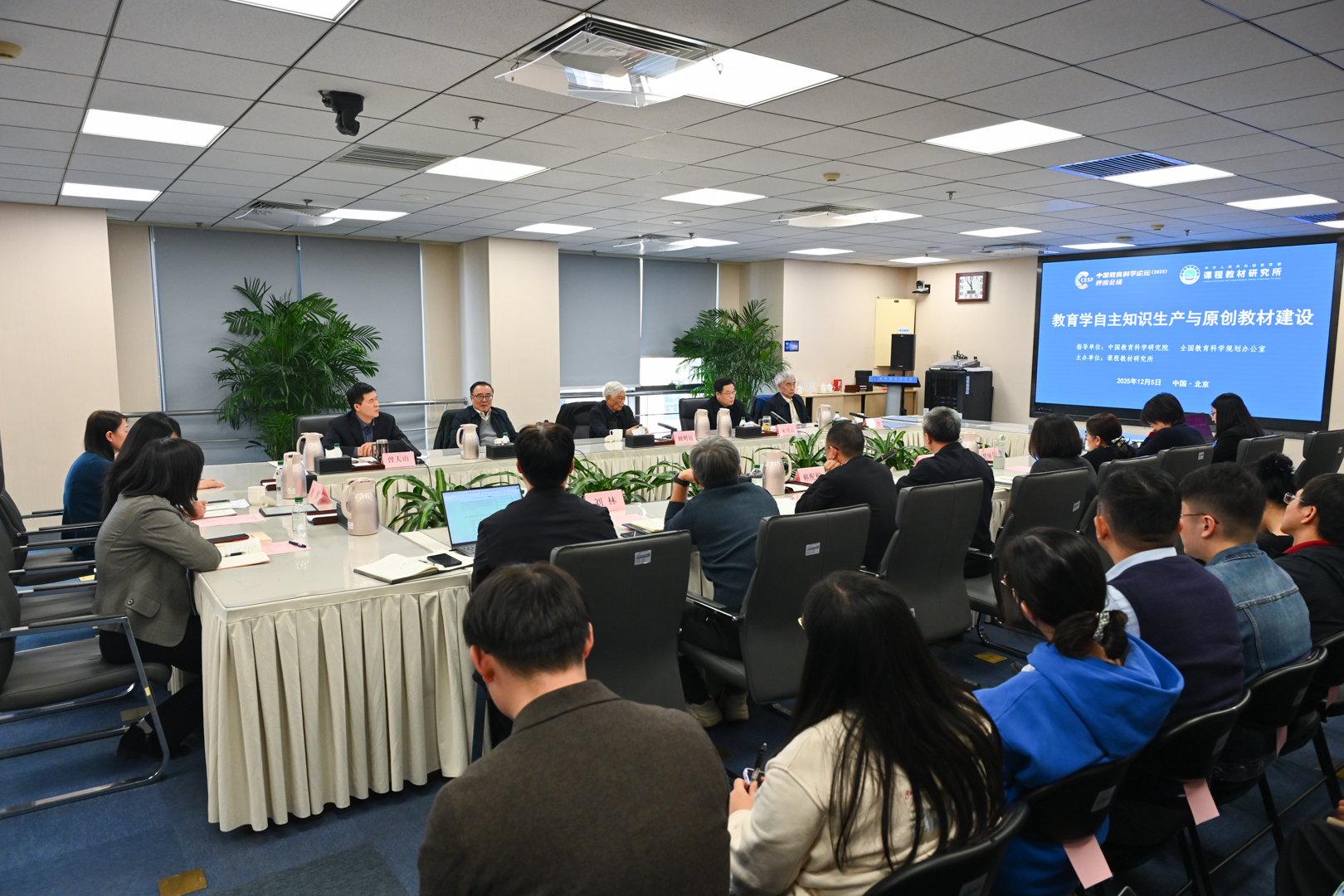12月5日,为呼应中国教育科学论坛(2025)“智能时代中国教育学知识重建”,受全国教育科学规划领导小组办公室委托,课程教材研究所(以下简称“教材所”)举办“教育学自主知识生产与原创性教材建设”学术研讨活动,邀请北京师范大学资深教授顾明远、清华大学文科资深教授谢维和、国家教育咨询委员会秘书长张力作专题报告。教材所党委书记、所长宋凌云出席并致辞。活动由教材所党委委员、副所长曾天山主持,教材所全体人员参加。